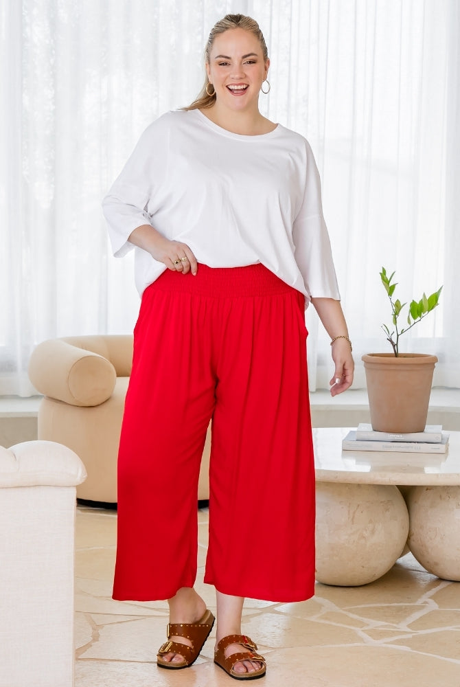 I can never find pants to fit me. I'm 156cm and size 22 and pants are alway too long. These pants fit like a dream! The silhouette is very flattering, and the fabric is soft, comfortable, and beautifully cool for warm weather, or for anyone who tends to feel the heat, like I do. I absolutely love them!