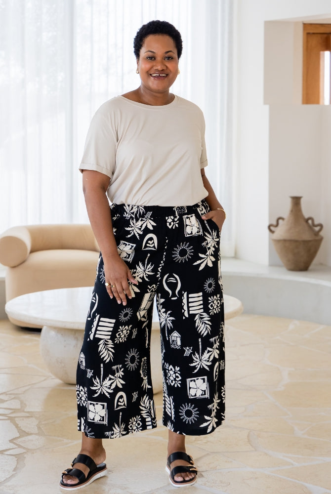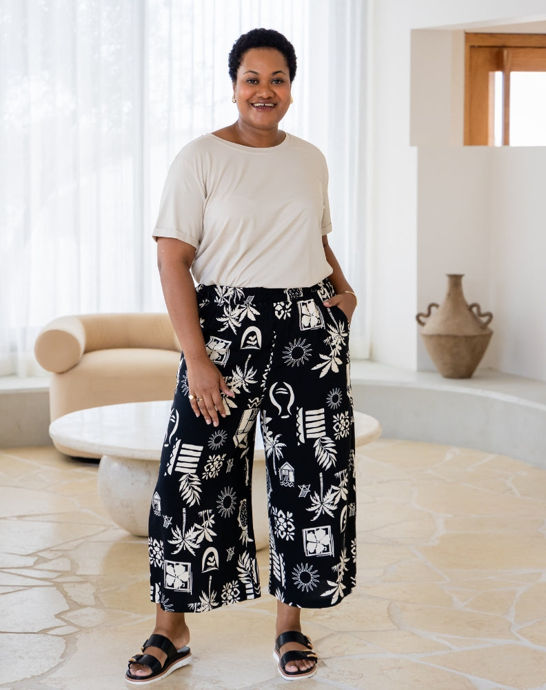 I can never find pants to fit me. I'm 156cm and size 22 and pants are alway too long. These pants fit like a dream! The silhouette is very flattering, and the fabric is soft, comfortable, and beautifully cool for warm weather, or for anyone who tends to feel the heat, like I do. I absolutely love them!