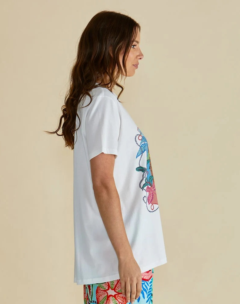 The Ellia Crew Tee offers an effortless, oversized fit crafted from soft cotton jersey. Featuring a crew neck and drop shoulder sleeves, it’s designed for easy layering or solo wear. With a slight high-low hem, this tee provides a comfortable, classic silhouette that works beautifully across transeasonal looks.