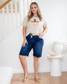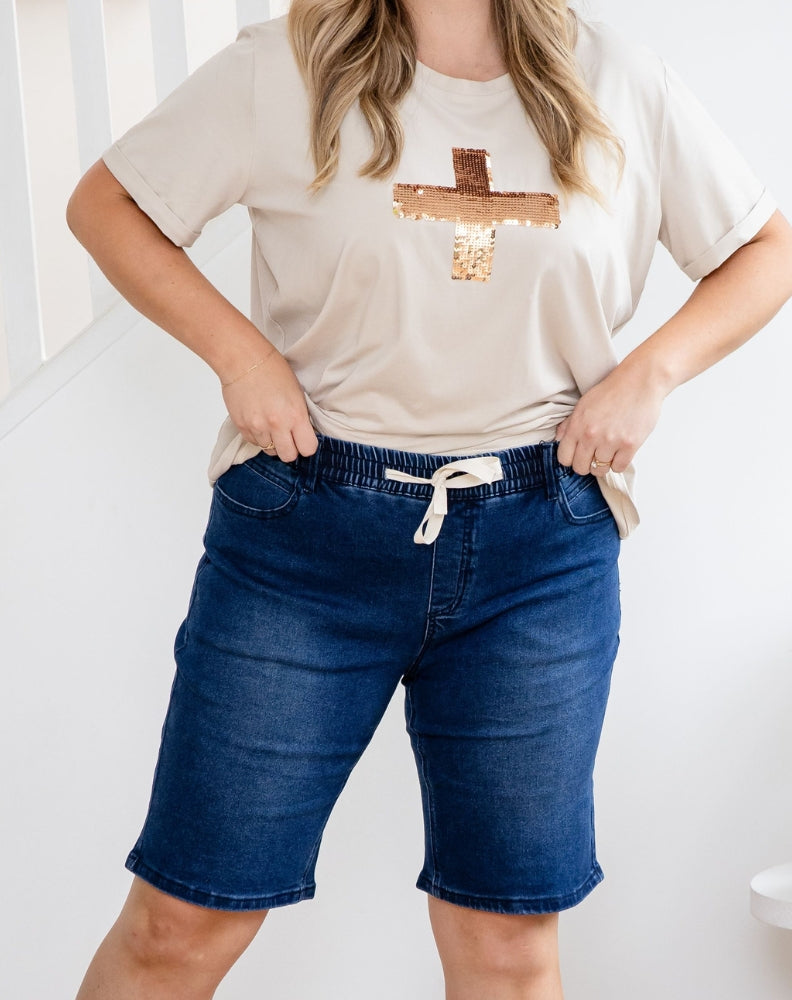 Model Bec wears a size 16. She is an AU 16. Her height is 176cm, bust is 104cm, waist is 91cm and her hips are 119cm.