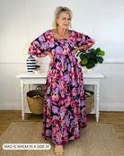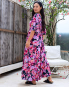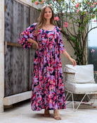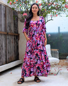 Our Kalani Dress is a show stopper! The cut, the fabric, the maxi length ... it is stunning. A flattering square cut neckline is complimented by a flowing sleeve, feminine empire seam and maxi skirt. Style with a sandal for day or elevate for evening with a heel.