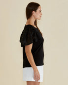 Lottie Embroidered Tee - Black