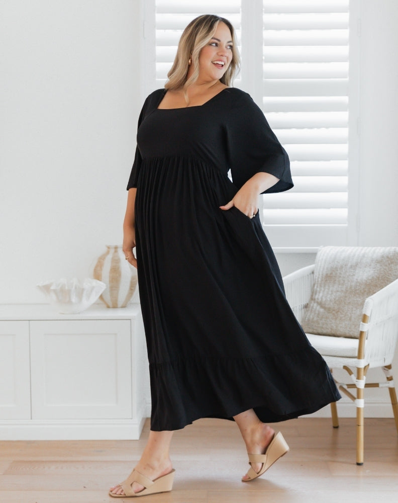 Embrace the everlasting appeal of the little black dress with Freez Clothing's collection, perfectly crafted for the modern everyday woman. Available in sizes 8-26, our range spans all styles from the essential midi, playful mini, to the classic maxi, ensuring there's a perfect black dress for every occasion.