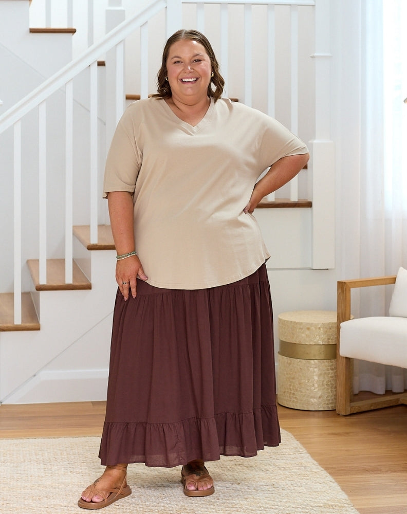 Introducing the Parker V Neck Tee - a refined essential from our Melissa Jade x Freez collaboration. An oversized fit meets elevated minimalism for easy, everyday styling.