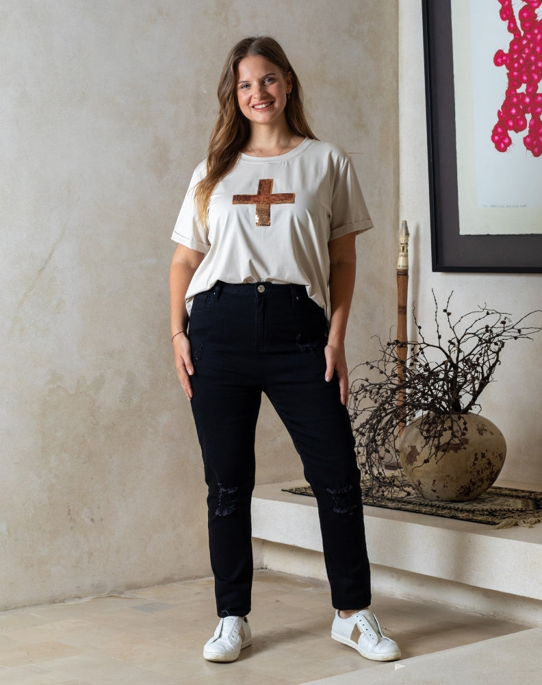 Introducing the Jenny Jeans, a fresh highlight in our Bee Maddison denim range. These jeans are designed to celebrate your shape with their curve-hugging fit and stretchy comfort. The high-waisted design and mid wash with just the right amount of distressing make them your go-to for effortless style and all-day ease.