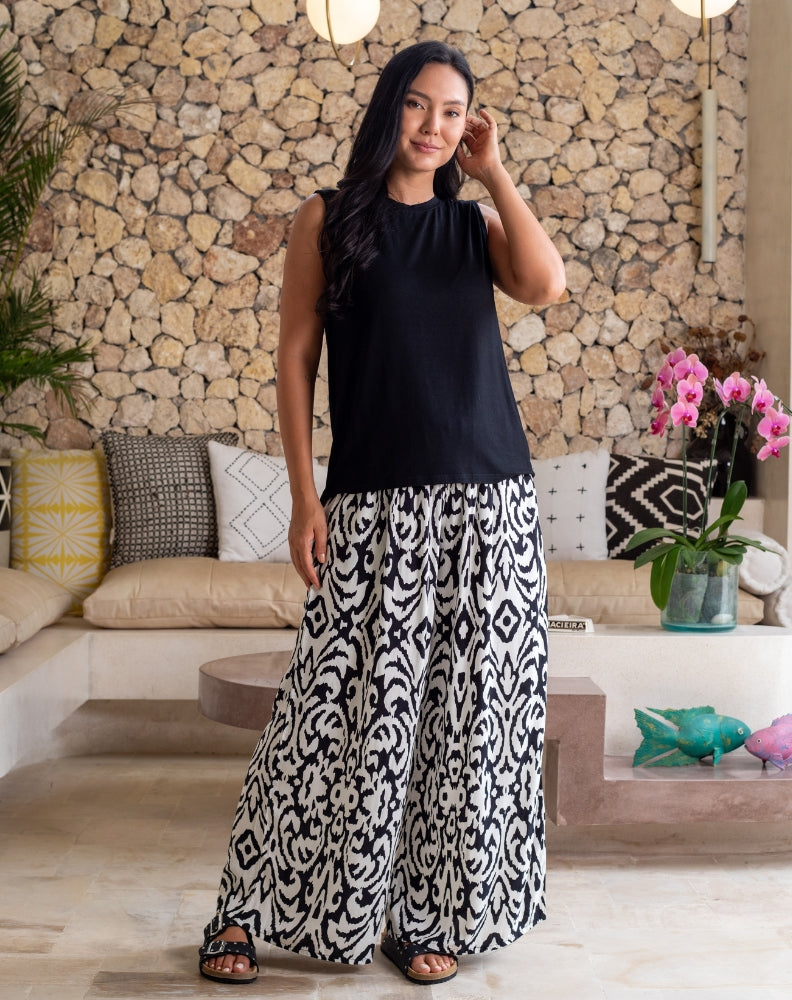 Our new Taylor Tank is a wardrobe essential! An on-trend sleeveless cut with long curved back hem. The light-weight soft fabrication is easy to tuck-in or perfect for layering under knits and jumpers. Style with our Freez Active or Lounge Pants.
