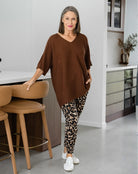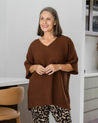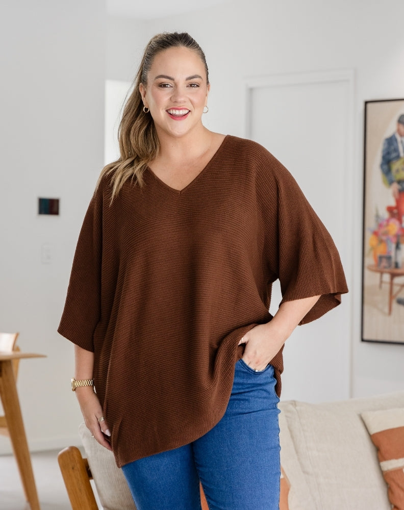 A gorgeous, long line knit with ribbed texture. The V-neckline and mid length sleeve make for the perfect transitional style. The draping fit is effortlessly stylish over jeans, cargo joggers & leggings accessorised with fashion sneakers or boots. Front tuck this knit to change your look!