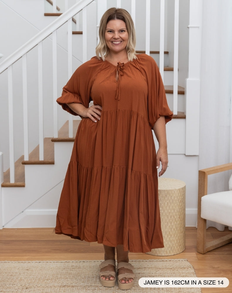 The Bee Maddison Jackson Dress is the definition of relaxed glam! The voluminous and feminine cut is perfectly on trend. Fun and flowing with fashion sneakers for a casual picnic. Style up with a heel and waist belt for a party.