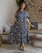 Step out in style with the Elsie Dress. This effortlessly chic Maxi Dress dress features a smart V-neckline and adjustable waist tie to accentuate your silhouette. Perfect for any casual outing or a dressy event, just slide into your favorite sandals and enjoy the day in comfort and style!