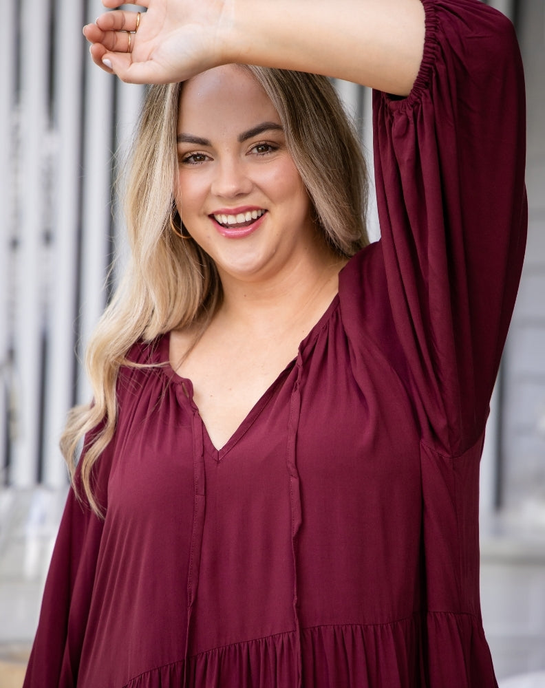 The Bee Maddison Jackson Dress is the definition of relaxed glam! The voluminous and feminine cut is perfectly on trend. Fun and flowing with fashion sneakers for a casual picnic. Style up with a heel and waist belt for a party.