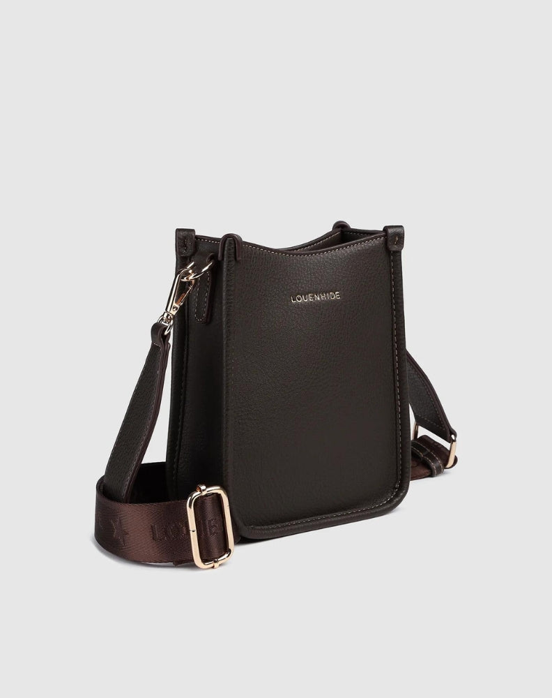 The Louenhide Parker Black Phone Crossbody Bag effortlessly combines an elevated aesthetic with everyday functionality. Whether you are heading to the office, running errands or meeting friends for coffee, this minimalistic phone bag will be your new go-to. Parker Black features an on-trend and modern portrait bag silhouette, enhanced by the contrasting stitch details in two classic colourways. Elevate your style with the adjustable webbing guitar strap or keep it simple with the matching vegan leather crossbody strap. Keeping your essentials at your fingertips has never been easier with the back side slip pocket.