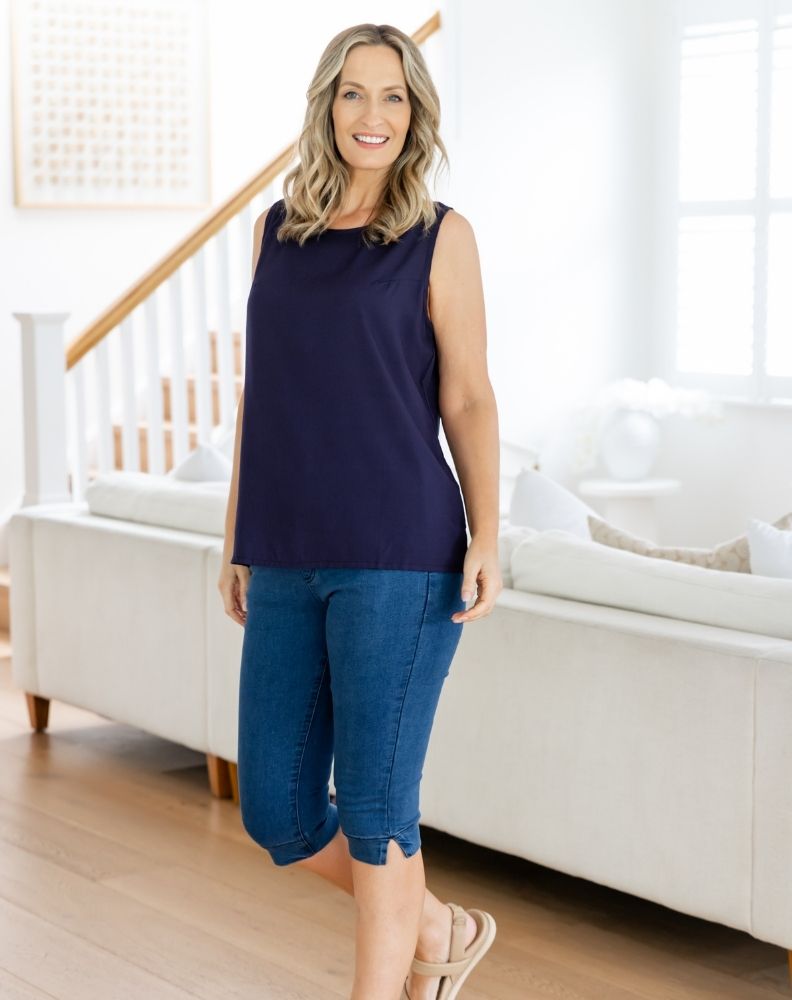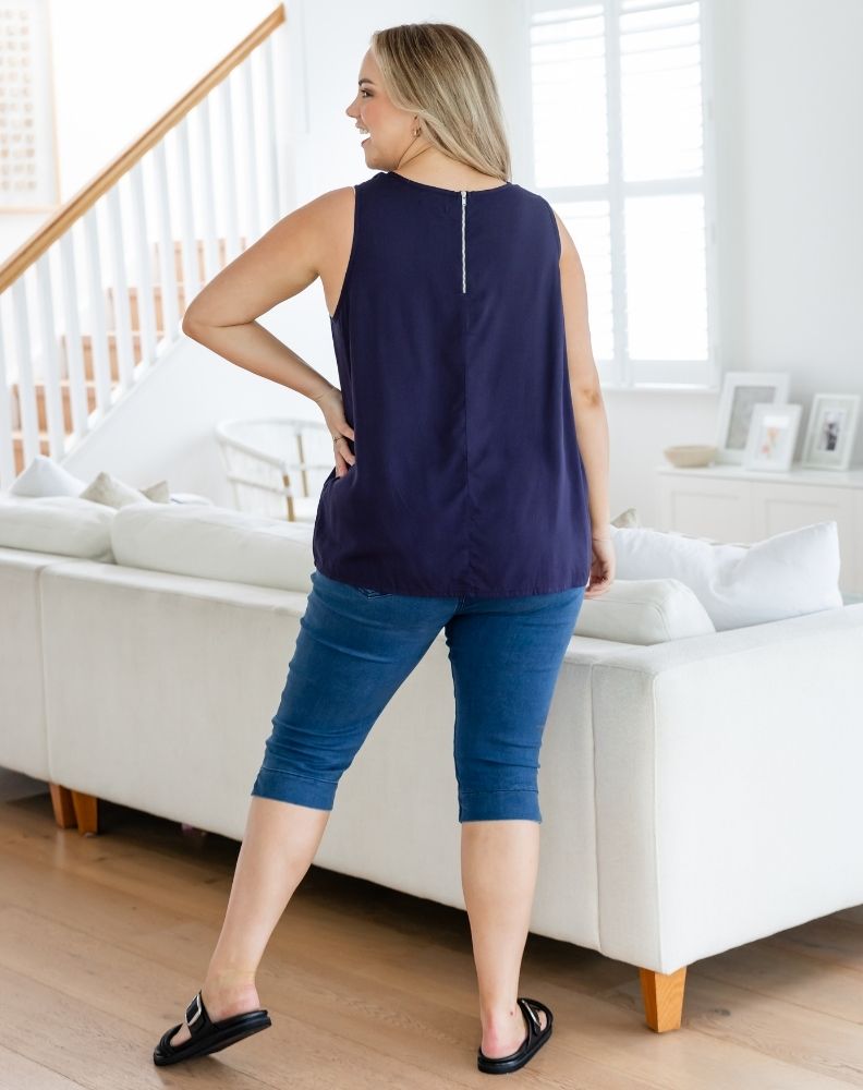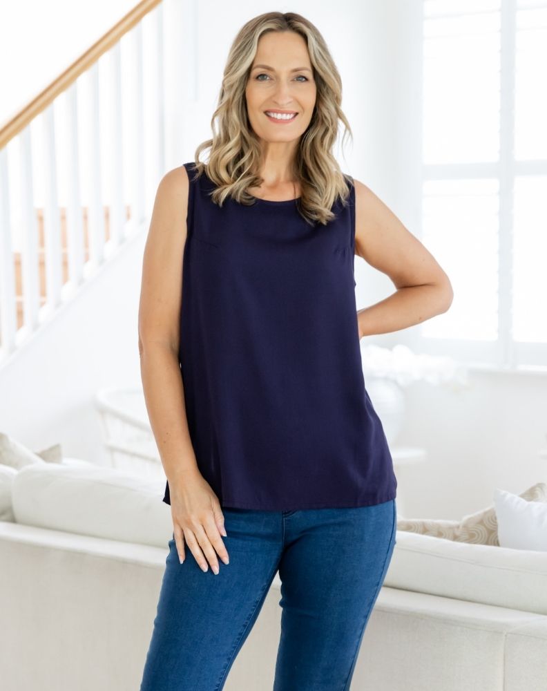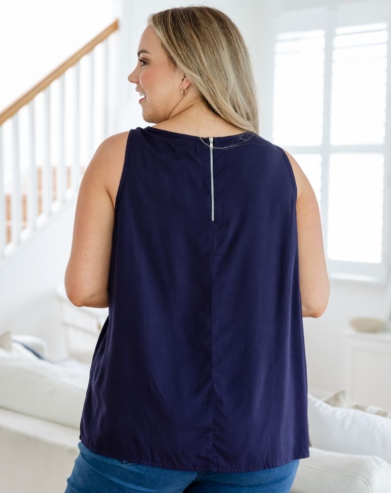 The Kel Top combines comfort and style with its lightweight fabric and sleek sleeveless design. Featuring a round neckline and unique back zipper for easy wear, this versatile top is perfect for any occasion, offering both sophistication and practicality. Ideal for layering or as a stand-alone piece