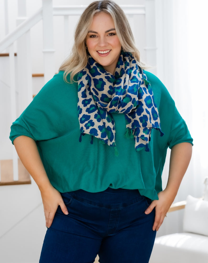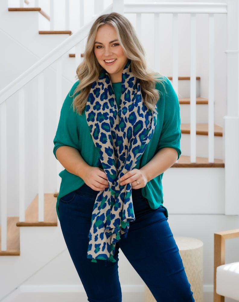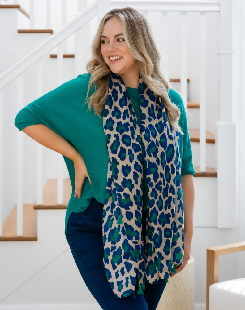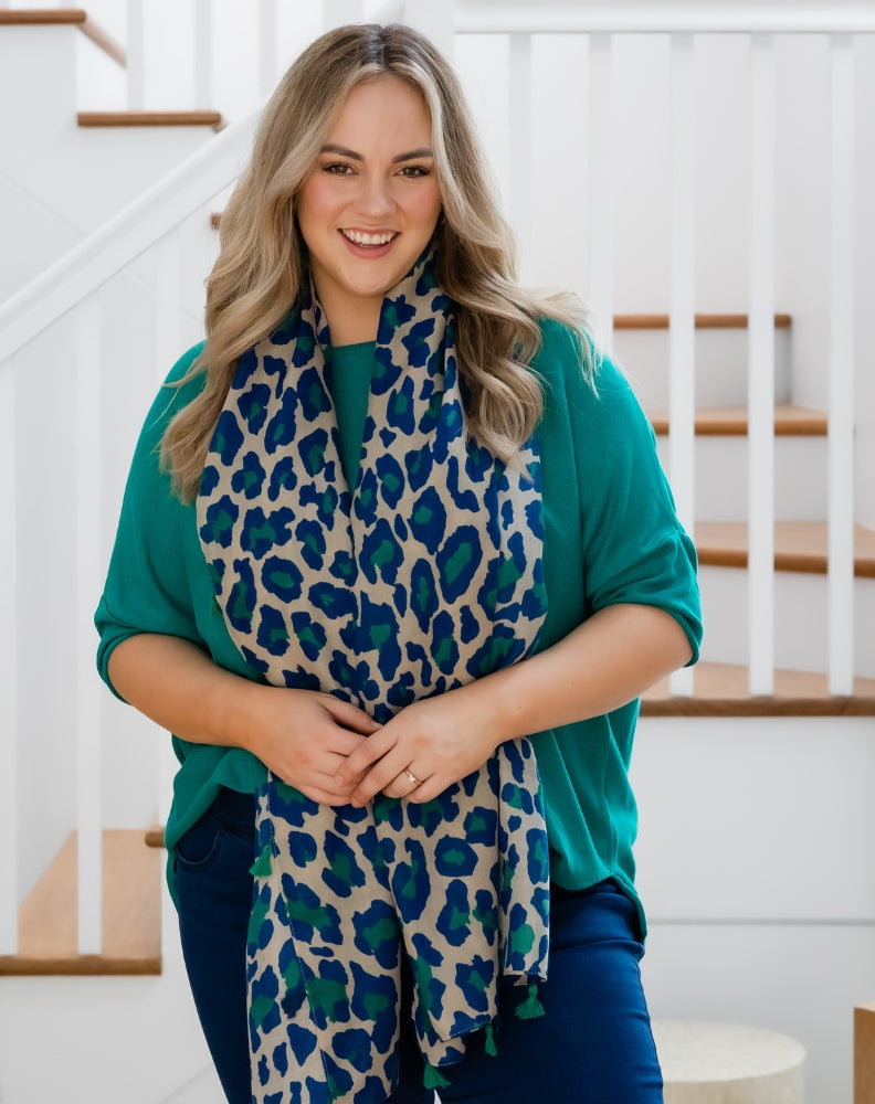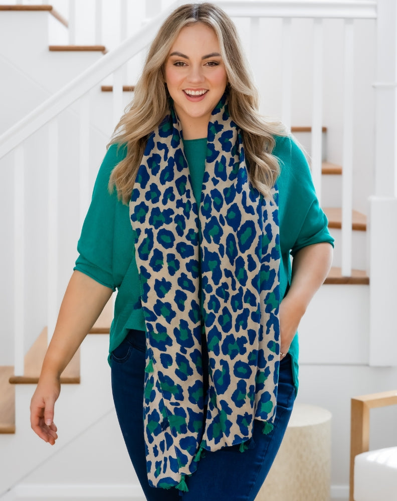 Animal Print Scarf - Blue/Green