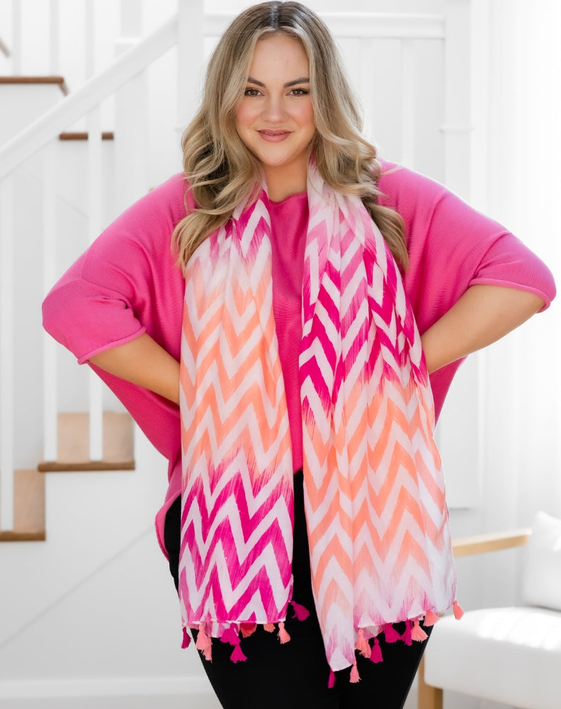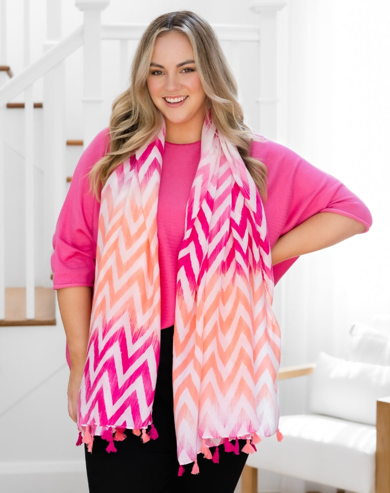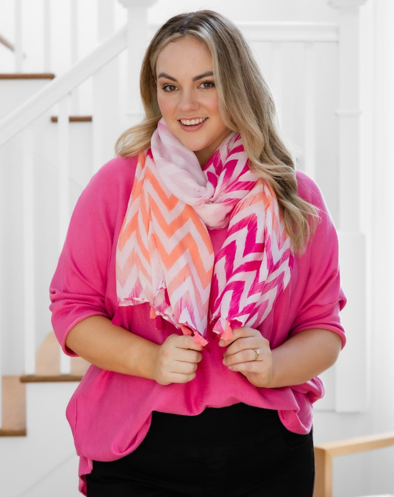 COLOUR: Pink and Orange Zig Zag with Blush Background