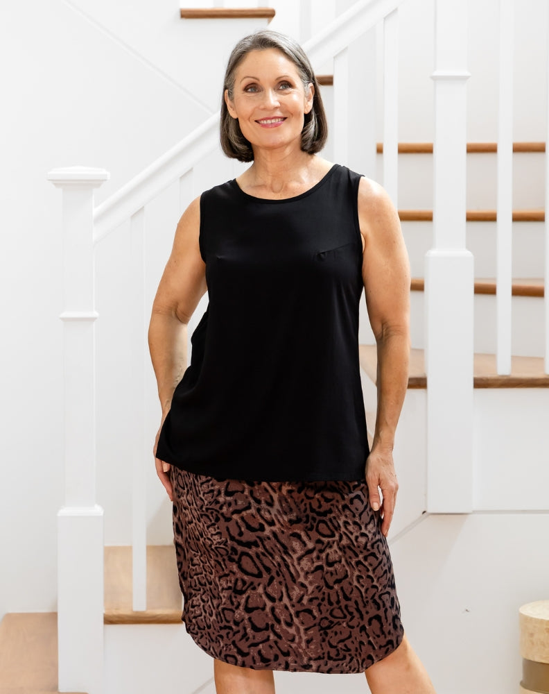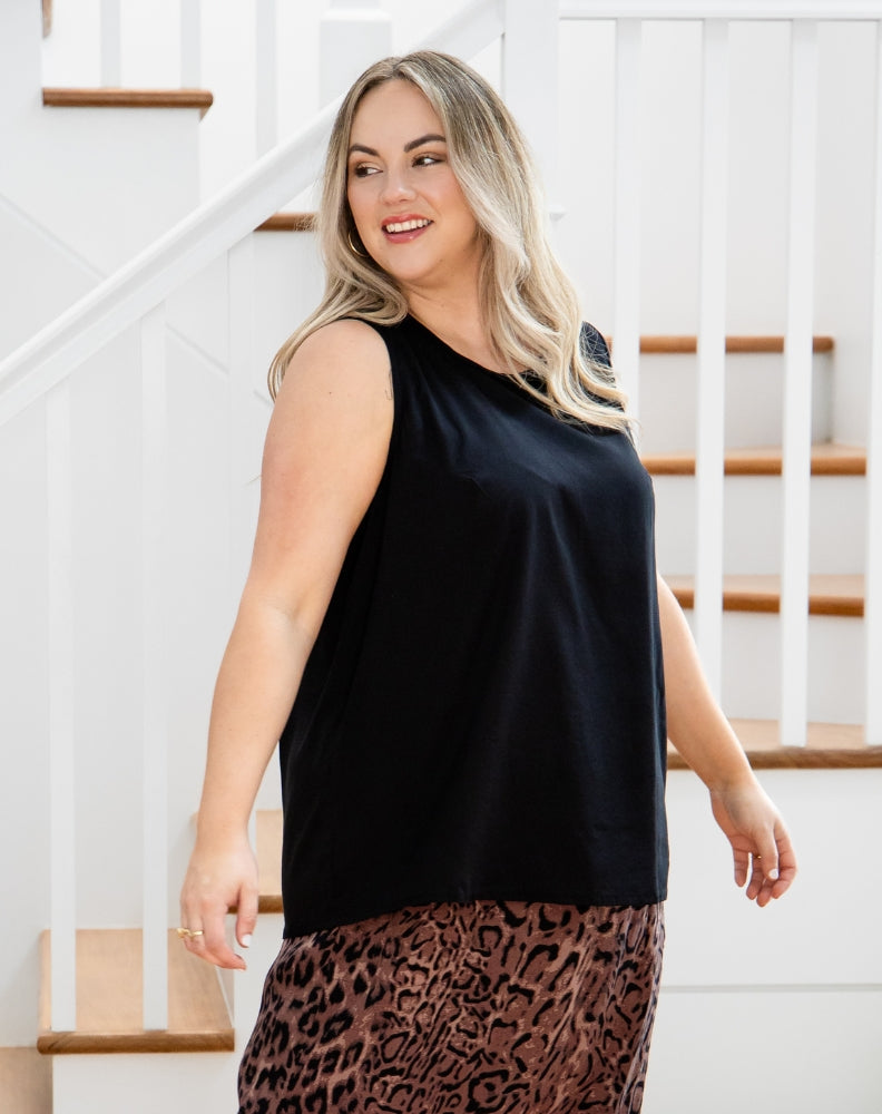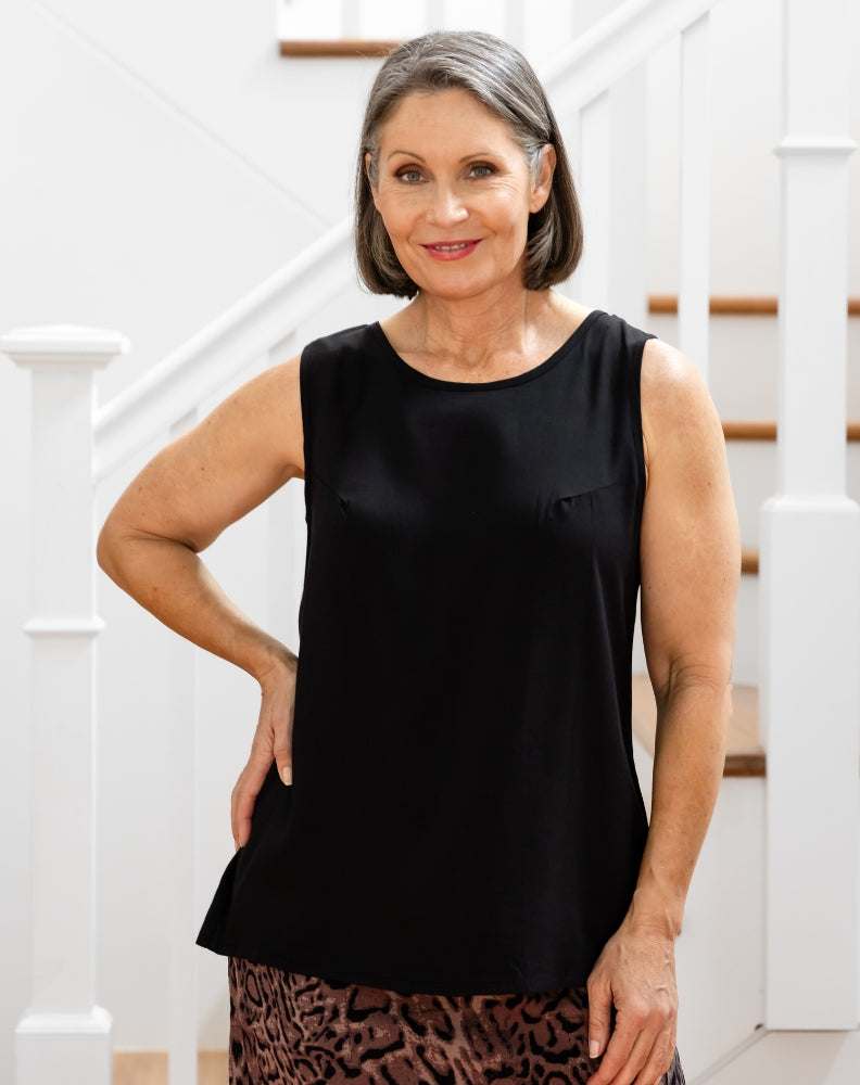 The Kel Top combines comfort and style with its lightweight fabric and sleek sleeveless design. Featuring a round neckline and unique back zipper for easy wear, this versatile top is perfect for any occasion, offering both sophistication and practicality. Ideal for layering or as a stand-alone piece