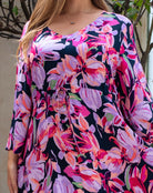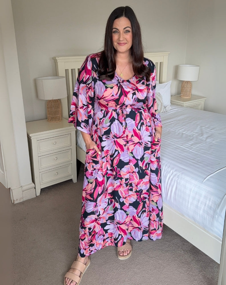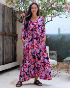 Our Zoe Maxi Dress is sure to attract many compliments!! Featuring statement wide sleeves, a drawstring tie to define the waist and a flowing skirt that skims over the hips. Style from casual to dressy with a simple change of accessories and shoes.