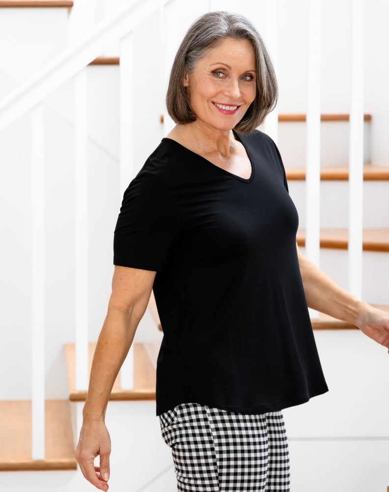 Say hello to the Elena Tee – the short sleeve version of our bestselling Laney Tee. Designed for easy outfitting across all seasons, this tee delivers that soft, stretchy feel you know and love in a fresh, versatile silhouette. Whether you're layering it up or styling it solo, Elena is your new everyday go-to.