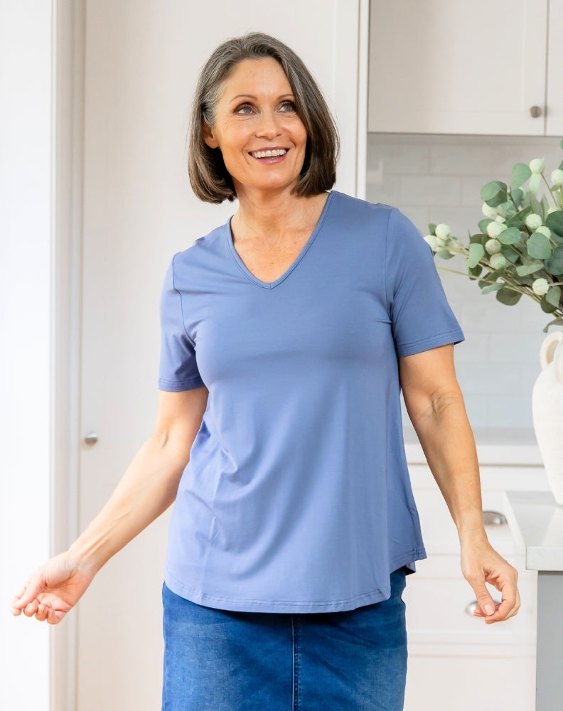 Say hello to the Elena Tee the short sleeve version of our bestselling Laney Tee. Designed for easy outfitting across all seasons, this tee delivers that soft, stretchy feel you know and love in a fresh, versatile silhouette. Whether you're layering it up or styling it solo, Elena is your new everyday go-to.