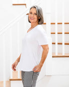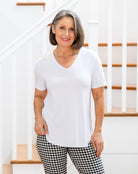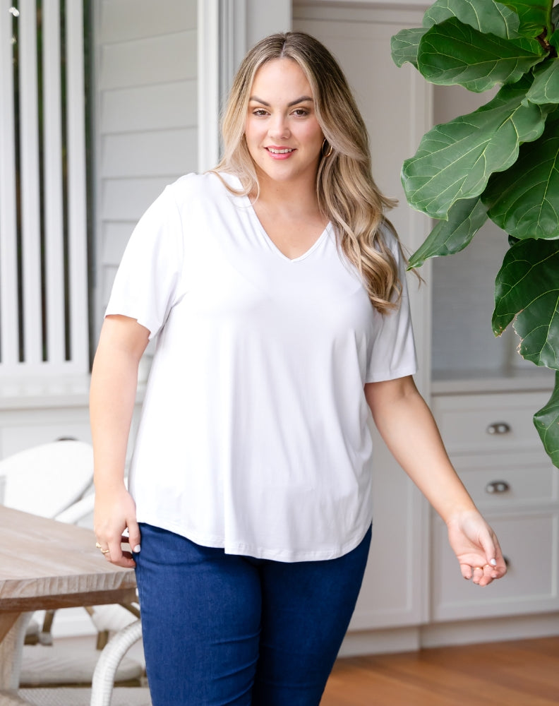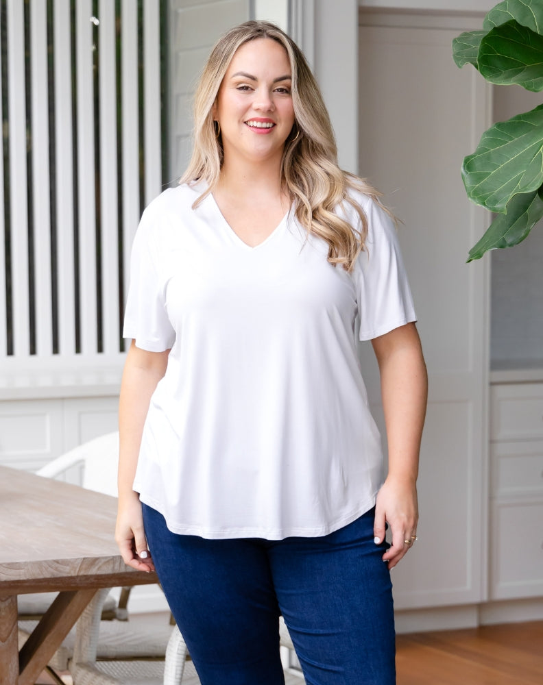 Say hello to the Elena Tee – the short sleeve version of our bestselling Laney Tee. Designed for easy outfitting across all seasons, this tee delivers that soft, stretchy feel you know and love in a fresh, versatile silhouette. Whether you're layering it up or styling it solo, Elena is your new everyday go-to.