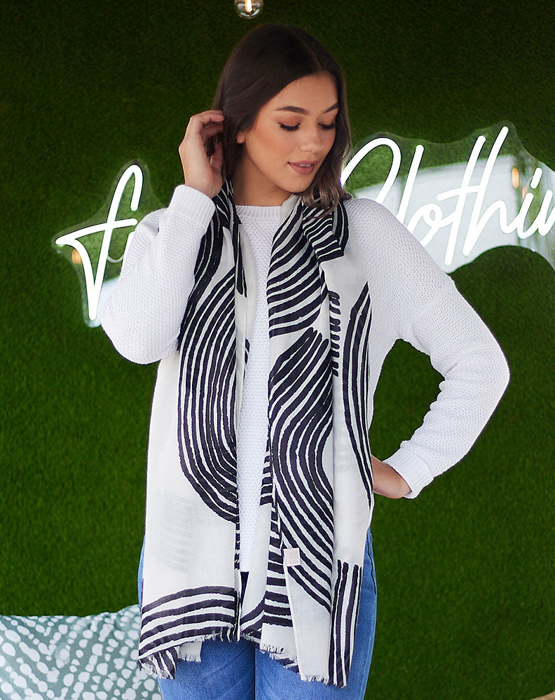 A light weight scarf in a gorgeous print that can take you through all seasons! Style as a light wrap for a summer evening or elevate a winter knit whilst adding warmth.