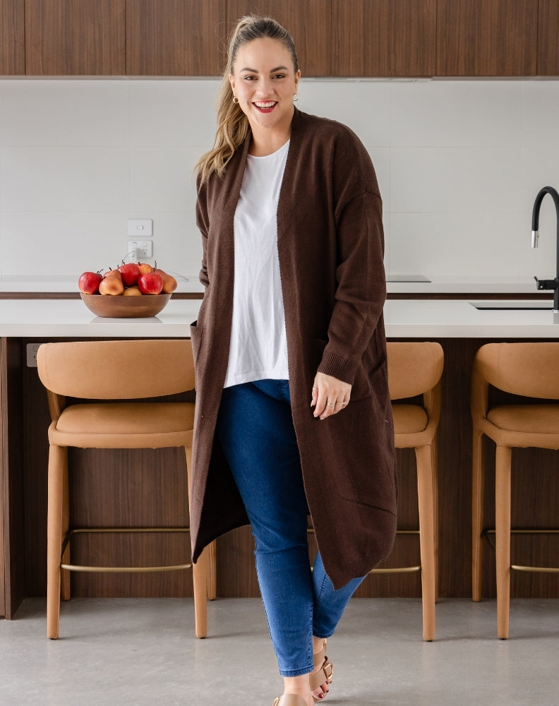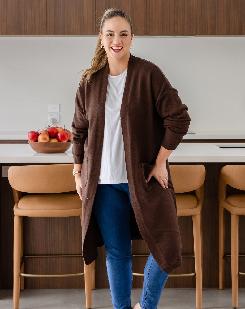 Saturday morning sport or the early morning coffee run never looked so stylish & warm with our Calie Knit. Make a statement & rug-up in this warm and cozy long line knit!
