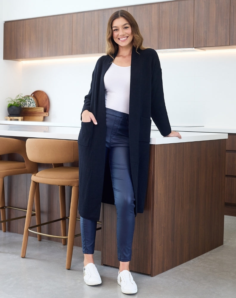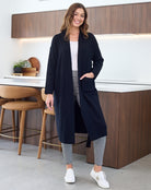 The Cassie Cardigan is your ultimate layering piece—combining the soft stretch of a cardi with the sleek shape of a coat. With a relaxed fit, open front, and waist tie, it’s relaxed enough for everyday wear but elevated enough to style up for outings. A wardrobe must-have for chilly mornings and in-between seasons.