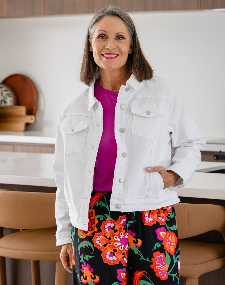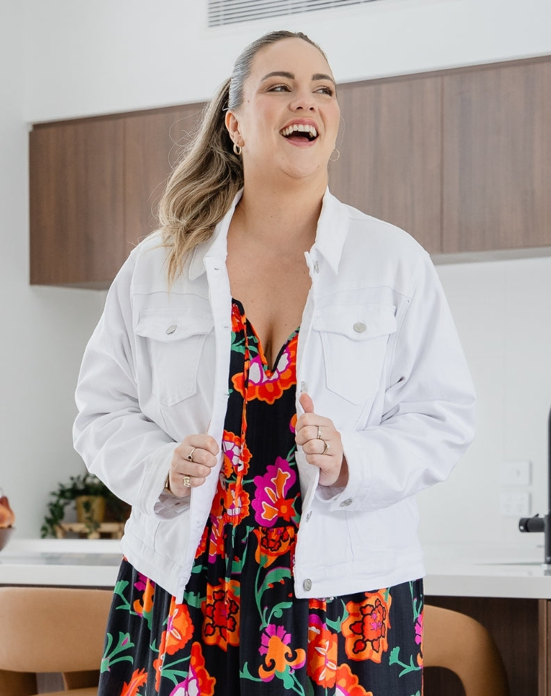 Get ready to slay in the Frankie Denim Jacket. With its stunning stretch denim, soft drape and chic silver hardware, this beauty can be rocked over your favourite dress or to elevate your everyday look. It’s a must-have for taking your look from day to night in style!