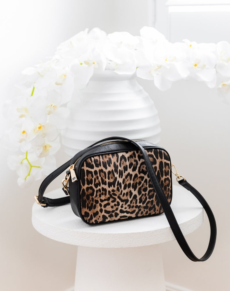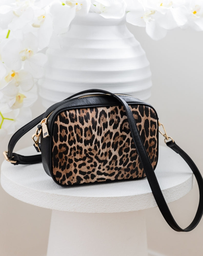 The Ginger Crossbody Bag from Louenhide is going to be with you for the long haul! Boasting two removable straps in different widths with light gold hardware and with animal print features, pair with your casual or smart casual outfits for a stylish addition.