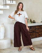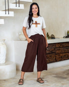 Discover the easy charm of our Iluka Pants. The perfect blend of our best selling Resort Pants and Sicily Pants. These 3/4 culottes are perfect for any casual or sophisticated setting, designed with a lightweight, breathable fabric for ultimate comfort. They're ideal for effortless, all-day wear.
