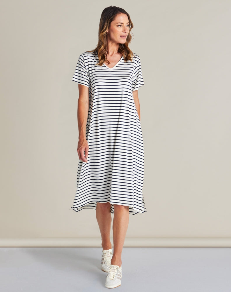 Irena Bamboo Dress - White/Navy Stripe