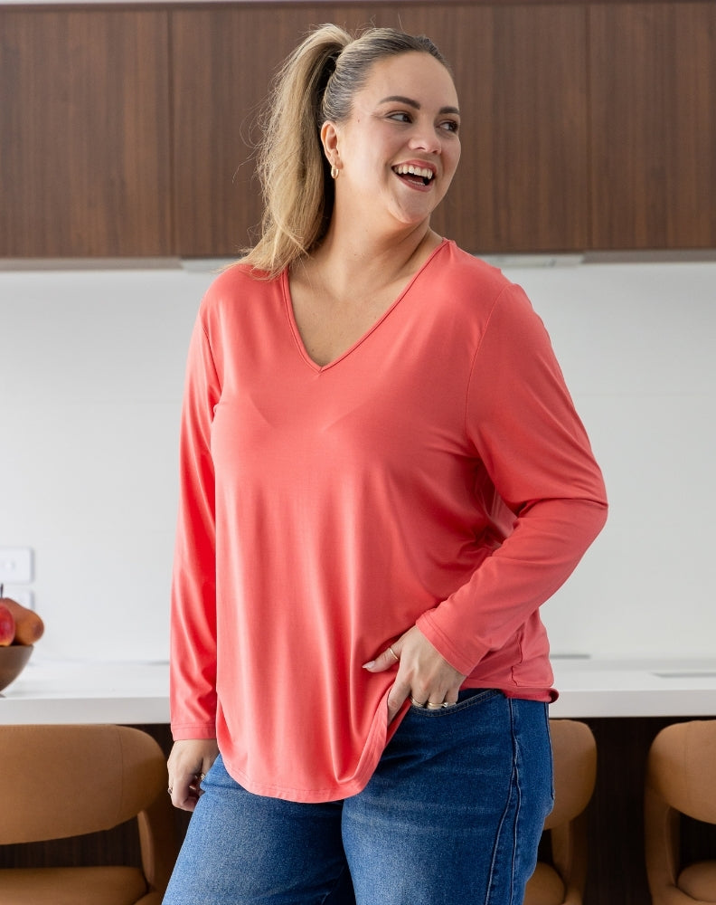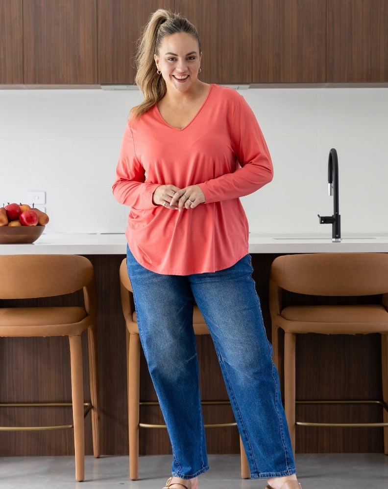 Say hello to easy, everyday style with the Laney V Neck Tee. With its flattering v-neckline, soft stretch fabric, and relaxed fit, this top is made for comfort without compromising on style. Whether you’re layering it under a jacket or wearing it solo with your favourite pants, Laney is the go-to tee you’ll keep reaching for.