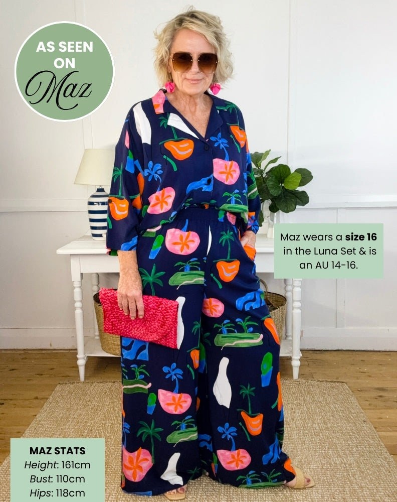 Our wide leg rayon pants are always a hit! Cool, lightweight and oh-so comfortable. Create an effortless look by pairing these pants with a plain top. Or take the to the next level by styling with the matching Luna Shirt for the ultimate on-trend set.