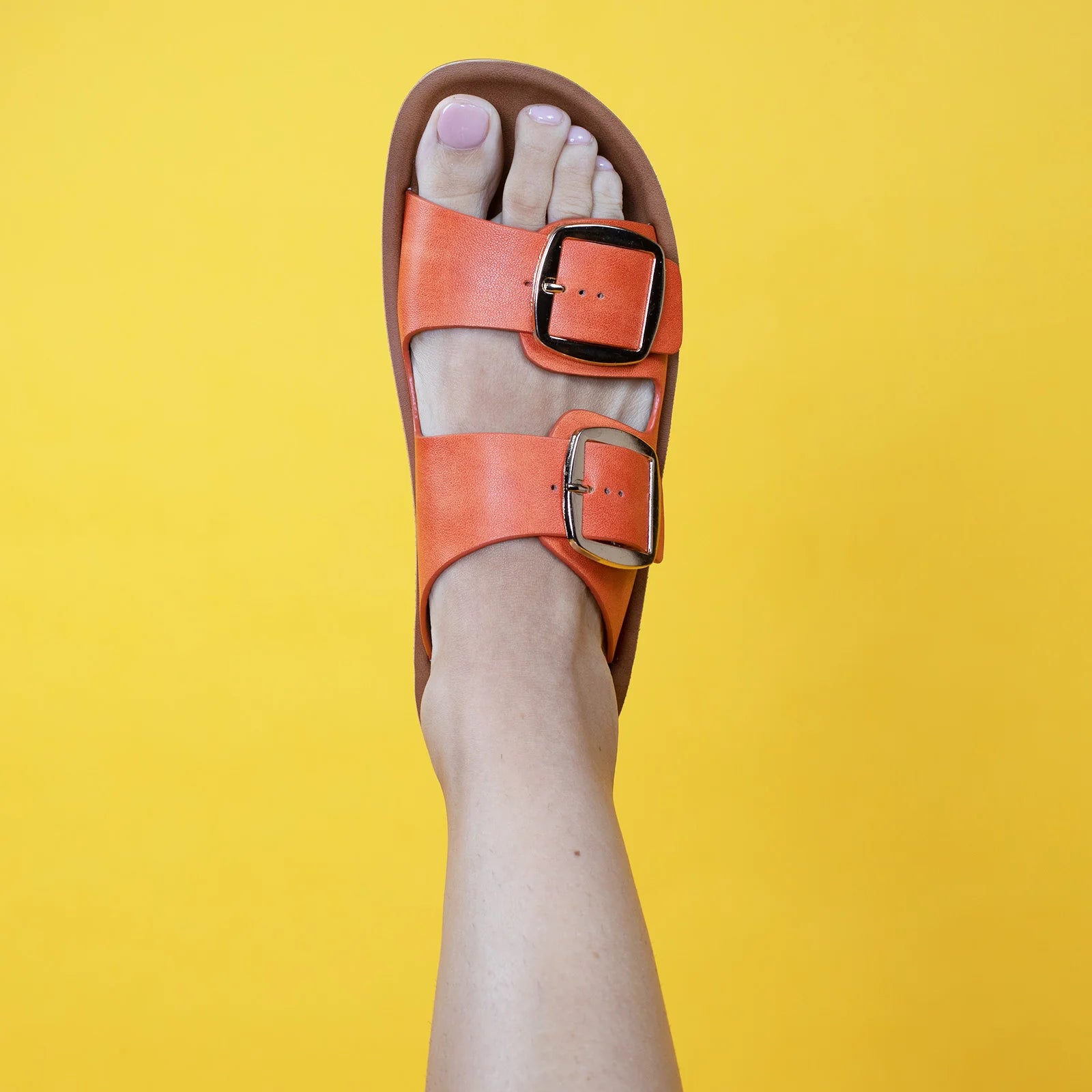 Elevate your style with the Naara Sandals. These classic slides feature double adjustable buckles and a low wedge heel, combining timeless design with modern comfort. Enjoy all-day support with built-in arch support and the luxurious feel of vegan leather.