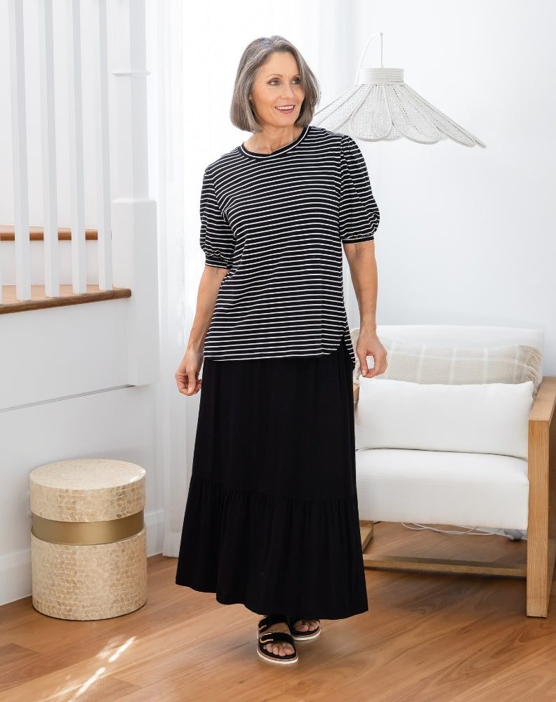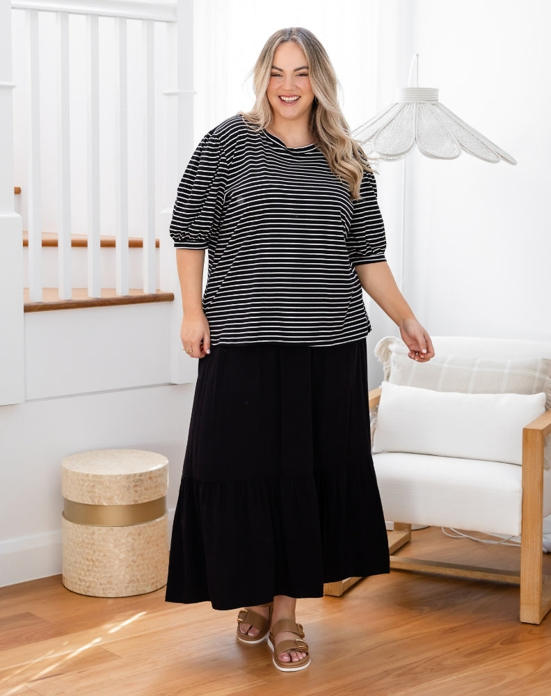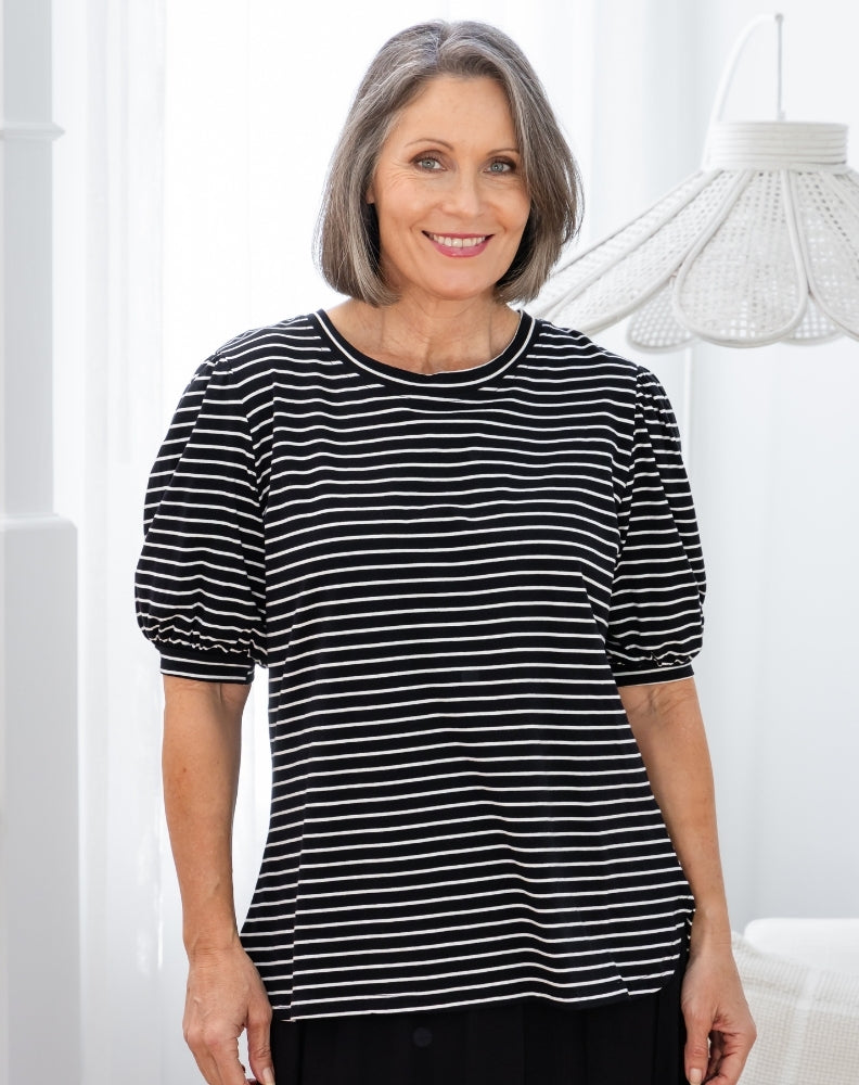Add a playful touch to your everyday look with the Phoebe Puff Sleeve Tee. Featuring soft stretch cotton and subtle puff sleeves with elastic cuffs, this tee is both flattering and comfortable. Style it with your favourite jeans or tuck it into a skirt for effortless chic.