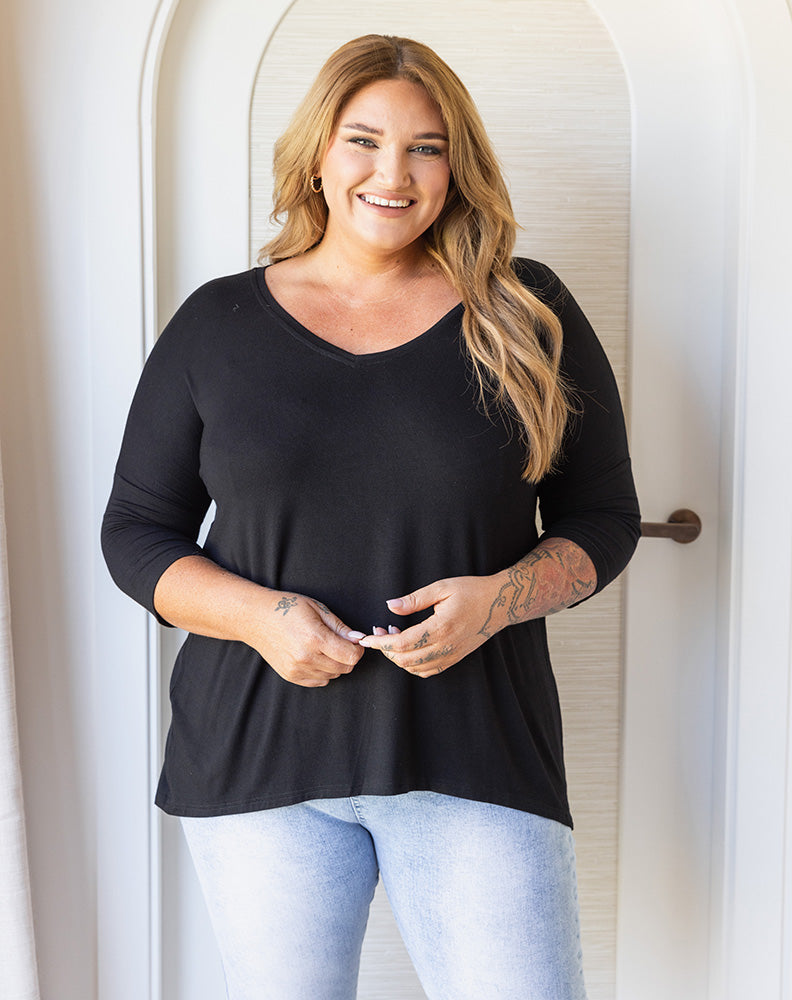 Autumn V-Neck Tee - Black