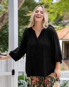 The Roxanne Top brings statement style with everyday ease. Whether you're pairing it with the matching Morgan Pants or your go-to denim, it’s an effortlessly cool choice for workdays or weekends. Wear it loose, half-tucked, or layered for a laid-back yet elevated look. This is a piece you’ll reach for again and again.
