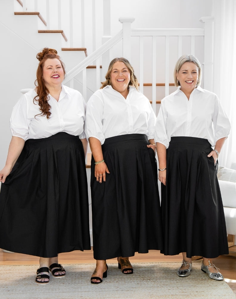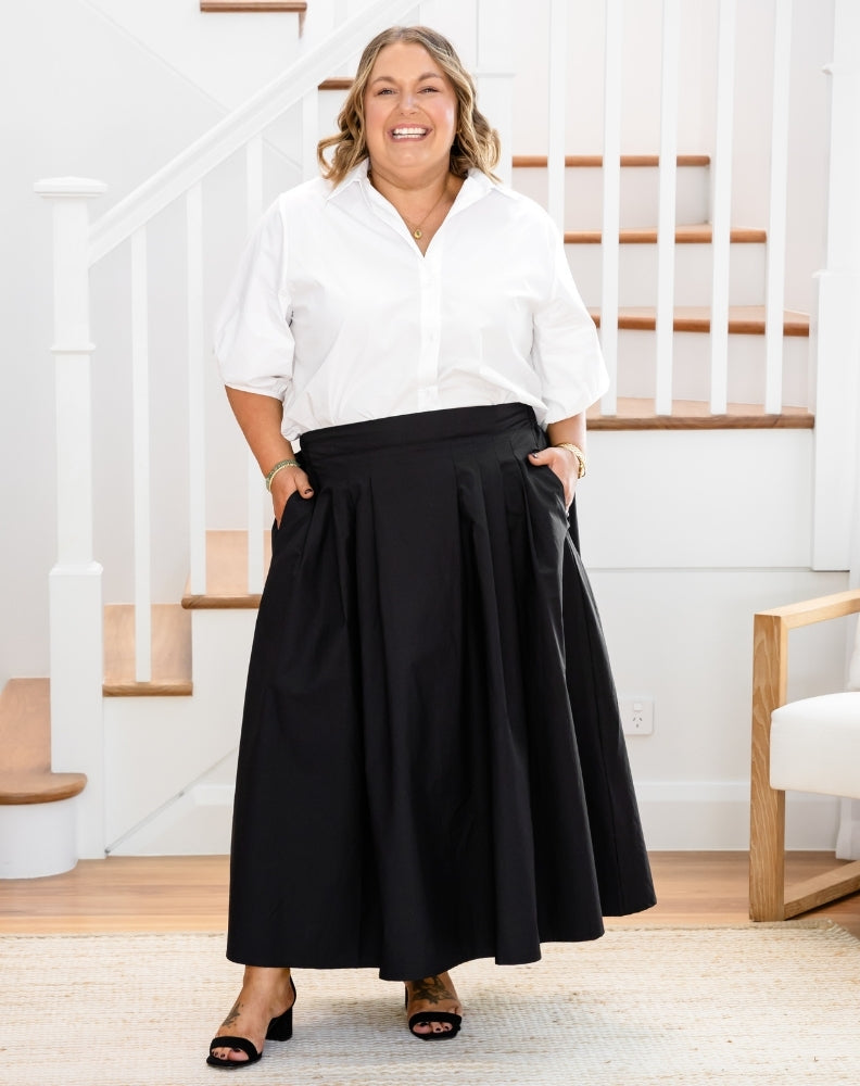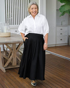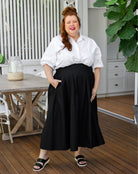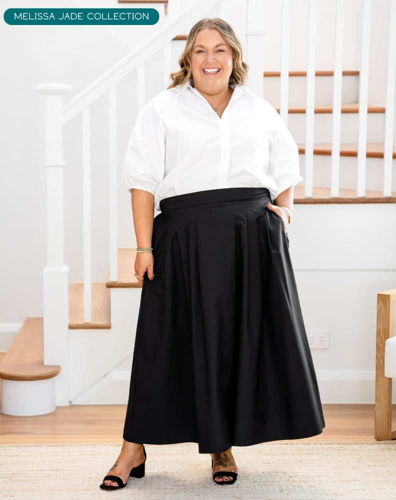 Make a statement in the Sadie Skirt — a standout piece from the Melissa Jade Style x Freez Collection. This skirt delivers effortless drama with its flowy silhouette and chic, tailored waistline. Whether you're pairing it with the Joanie Shirt or with the relaxed Ellie Tee, the Sadie Skirt adds polish and poise to any outfit.