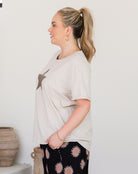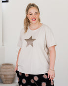 A flattering, classic cut tee with feature sequin star design! A great tee for casual days teamed with your favourite shorts or denim. The sequin detail allows you to easily up-style this tee for an occasion by adding a pair of heels and blazer.