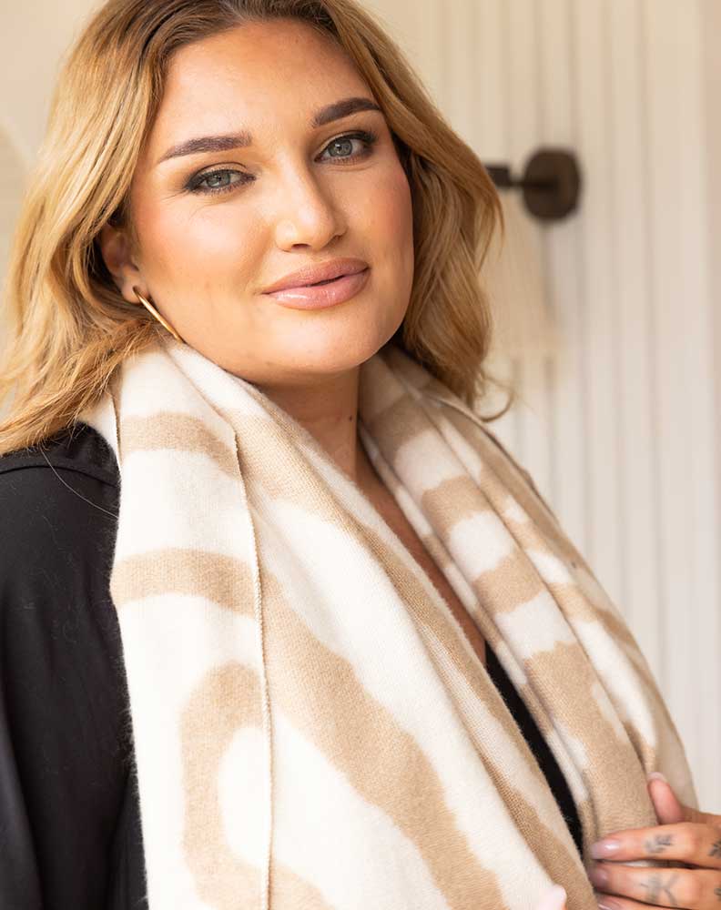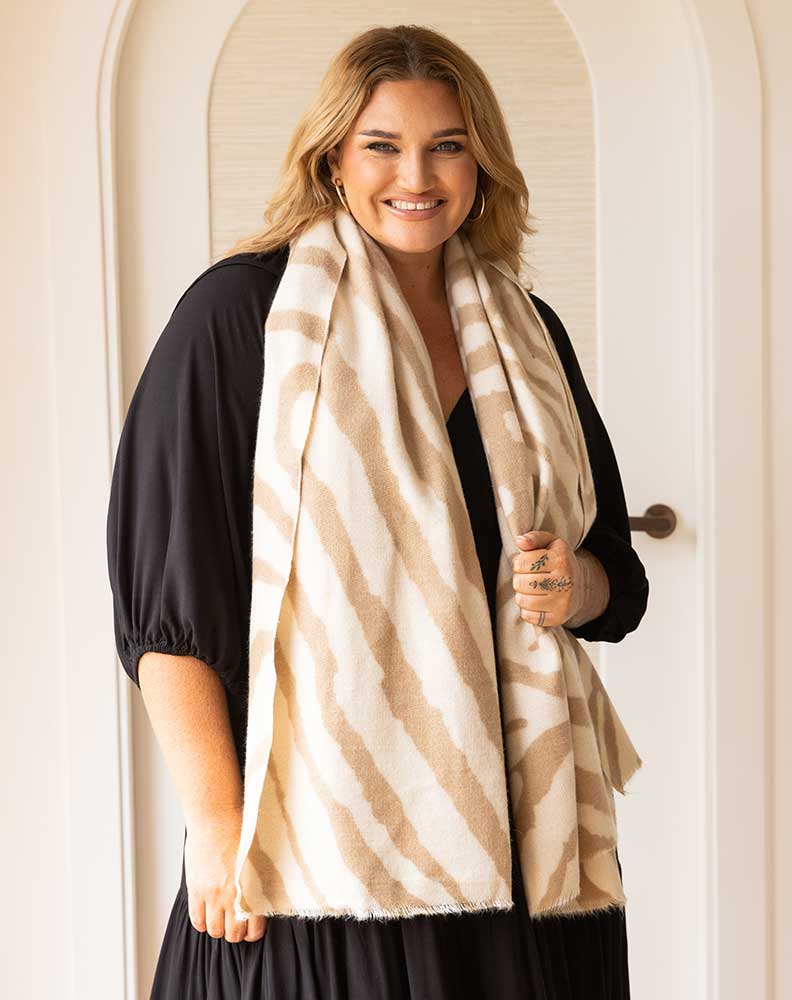 A soft feel scarf in a striking stripe print! Elevate your winter outfit whilst adding warmth. The generous size allows you to style this scarf many ways.