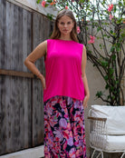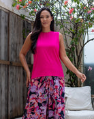 Our new Taylor Tank is a wardrobe essential! An on-trend sleeveless cut with long curved back hem. The light-weight soft fabrication is easy to tuck-in or perfect for layering under knits and jumpers. Style with the Paige Pants or the Lounge Pants for a casual loungewear look.