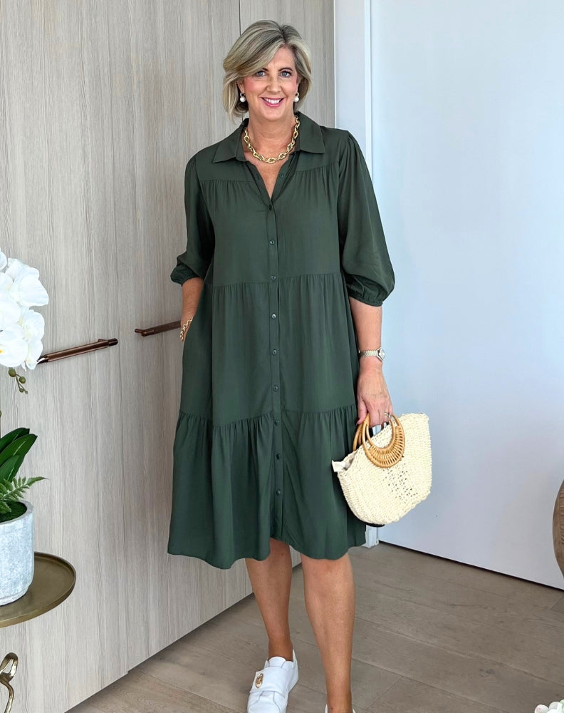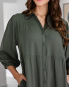 Say hello to your new go-to everyday dress. The Tara Shirt Dress features a flattering tiered design, functional buttons down the front, and a soft sleeve shape that offers comfort and coverage. Lightweight and easy to wear, it’s the perfect balance of relaxed style and feminine detail. Just add sandals or sneakers and you’re good to go.